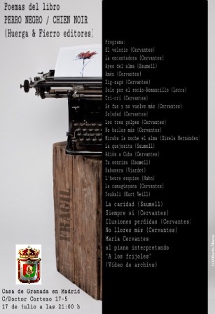 Se recitarán versos del poemario Perro Negro / Chien noir del autor Julián Martínez Gómez, editorial Huerga & Fierro 2016 acompañados por la música de dos importantes compositores cubanos del siglo XIX: Ignacio Cervantes y Manuel Saumell interpretada por el pianísta Andrés Manuel Martínez. La voz extraordinaria de la soprano Mónica Luz interpretará piezas de varios compositores.