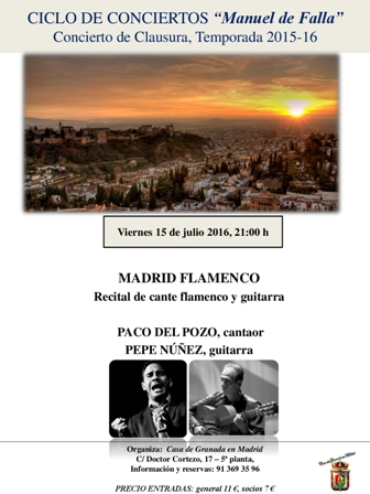 Domingo 17 de Julio a las 21:00h. en la Casa de Granada en Madrid