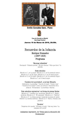 En relación al Ciclo de Conciertos «Manuel de Falla» que se llevará a cabo en la Casa de Granada en Madrid C/ Doctor Cortezo, 17 – 5ª Planta.
