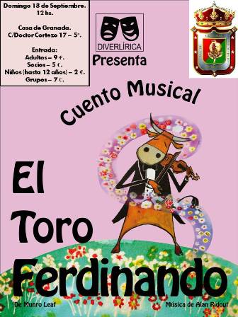Publicado el 9 septiembre, 2016 por Casa de GranadaDomingo 18 de Septiembre a las 12:00h. Domingo 18 de Septiembre a las 12:00h. Cuento Músical » El Toro Ferdinando y sus amigos»