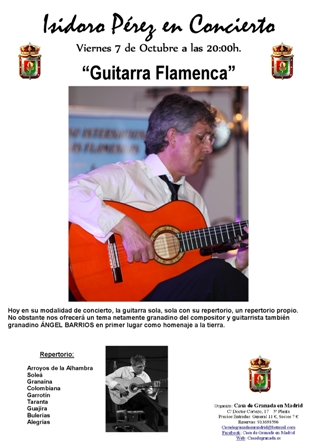 Publicado el 3 octubre, 2016 por Casa de GranadaViernes 07 de Octubre a las 20:00h. Recital de Guitarra Flamenca (Isidoro Pérez)